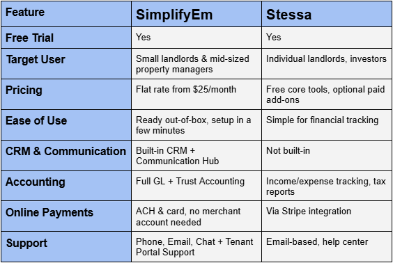 In 2025, property managers and landlords alike are relying on software to streamline their operations, automate financial tasks, and prepare for growth. Two recognized platforms—SimplifyEm and Stessa—serve different audiences, but both aim to make managing rentals easier.