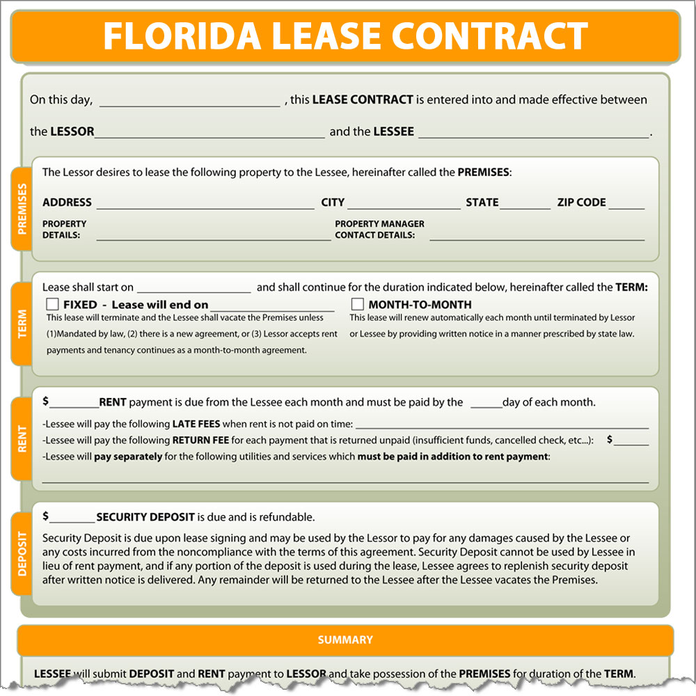 Florida Lease Contract Form used by landlords and Florida property management companies to make a legal contract with tenants in Florida. Click on the image above to take a closer look a the Florida Lease Contract, and to download the free Florida Lease Contract, go back to the previous page and click on the green download button. If you would like to purchase a custom designed Florida Lease Contract, please send an email to forms@simplifyem.com.