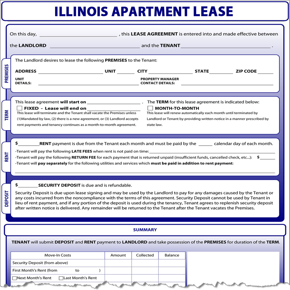 Illinois Apartment Lease Forms are used by Illinois property management companies when renting apartments to tenants. Click on the image above to take a closer look at the apartment lease, and download the Illinois lease agreement for free by going back to the previous page and clicking on the green download button. If you would like to purchase a custom designed Illinois Residential Lease or Illinois Lease Contract, please send an email to forms@simplifyem.com.