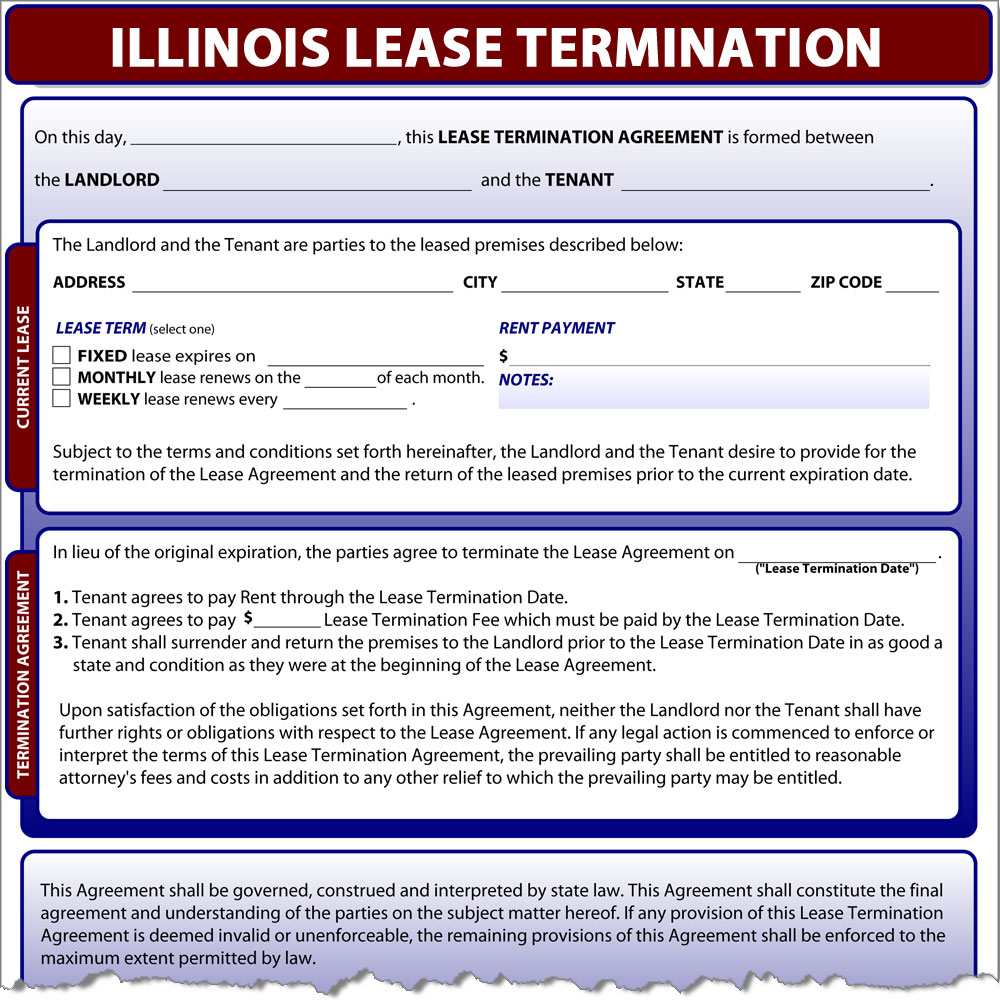 Illinois Lease Termination Forms like this (not to be confused with Illinois Eviction Notice Forms) are used by Illinois property management companies to terminate their Illinois Residential Lease Agreements. Download a free Illinois Lease Termination Agreement and other Illinois Lease Contract Forms by going back to the previous page and clicking on the green download button. If you would like to purchase a custom designed Illinois Lease Termination Notice or other Illinois Rental Lease Forms, please send an email to forms@simplifyem.com.