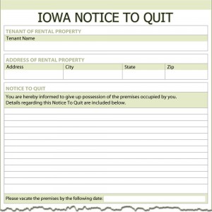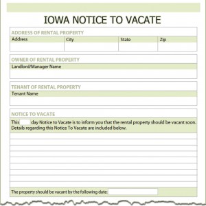 Iowa Notice to vacate- Form filed by property management company or property managers that tenant will be leaving the rental property by certain date. |