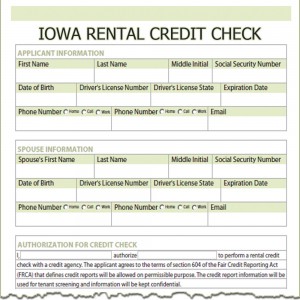 Iowa Rental Credit Check - form used by property management companies or property managers to check the credit history of an applicant. |