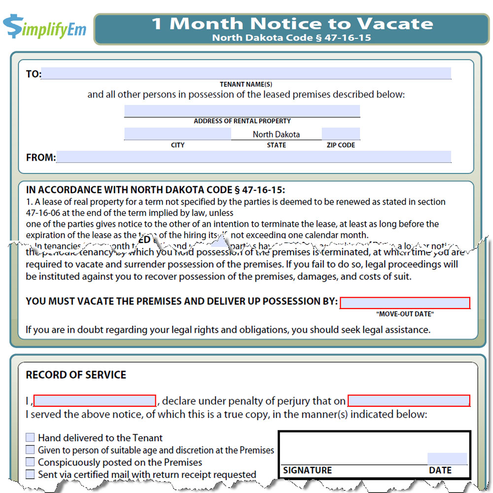 SimplifyEm North Dakota Notice to Vacate Form – Clear and easy to understand