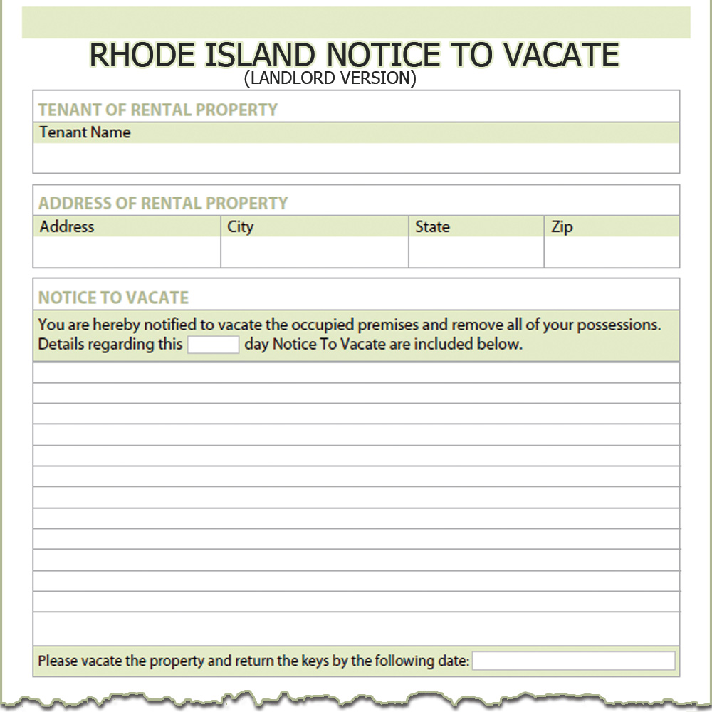 Rhode Island Landlord Notice to Vacate Form used by Rhode Island landlords, Rhode Island property managers, and Rhode Island property management companies to notify tenants in Rhode Island that they must vacate the rental property and remove all of their possessions within 30, 60, or 90 days.