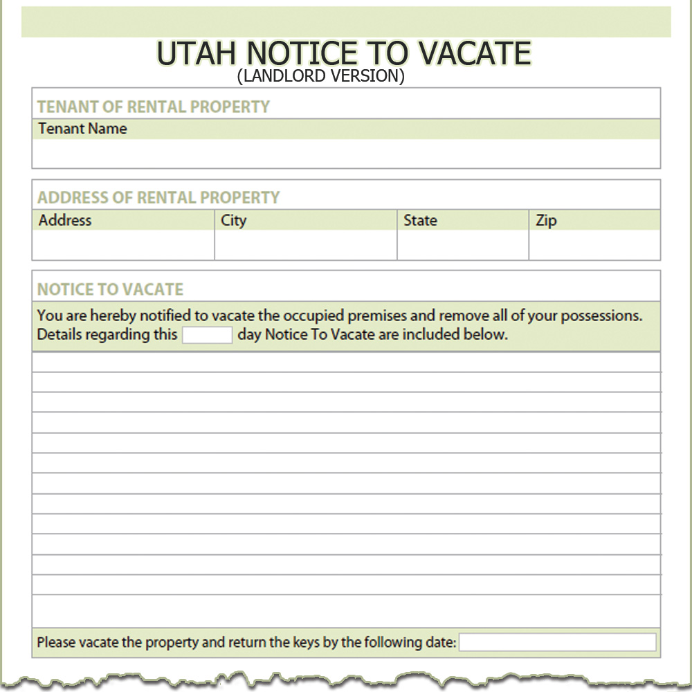 Utah Landlord Notice to Vacate