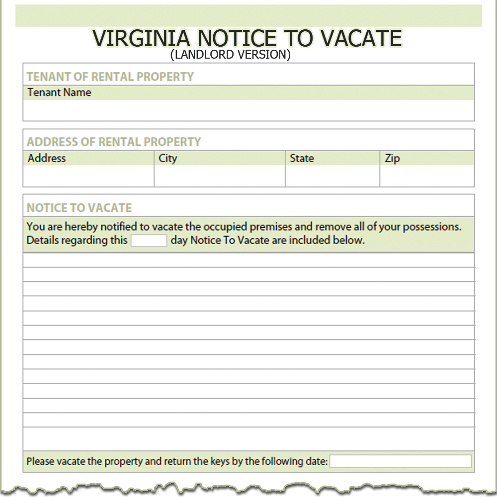 Virginia Landlord Notice to Vacate