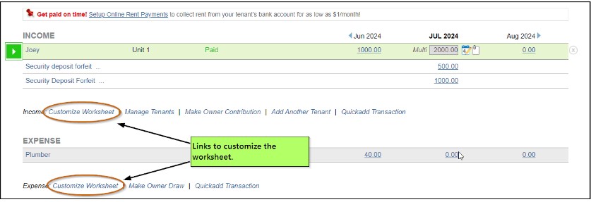 SimplifyEm.com Property Management Software provides the flexibility to customize the “Worksheet” for each property, making it easier to track and organize property-specific transactions.
