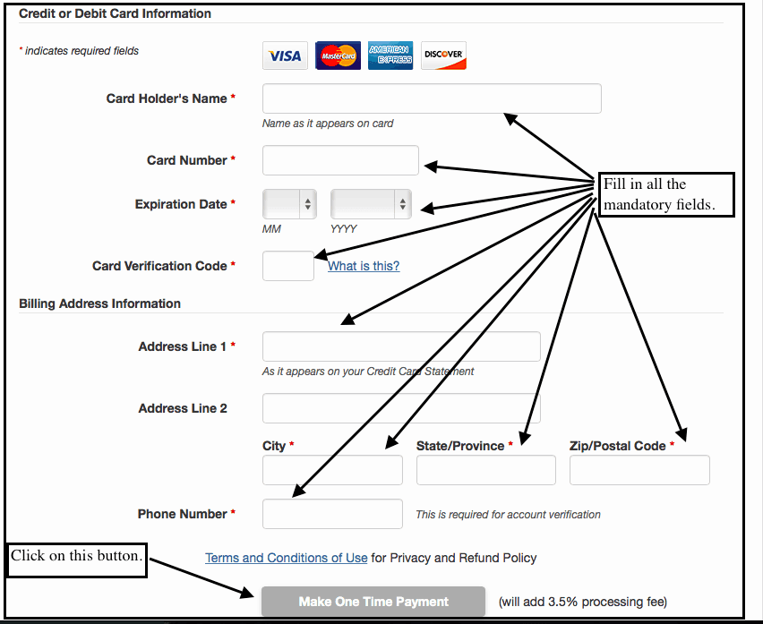 When selecting the credit card option, a new section will appear where tenants must provide their credit card details. All required fields should be filled in accurately, including card number, expiration date, and security code. After completing these steps, tenants can click the “Make One Time Payment” button to submit their payment.