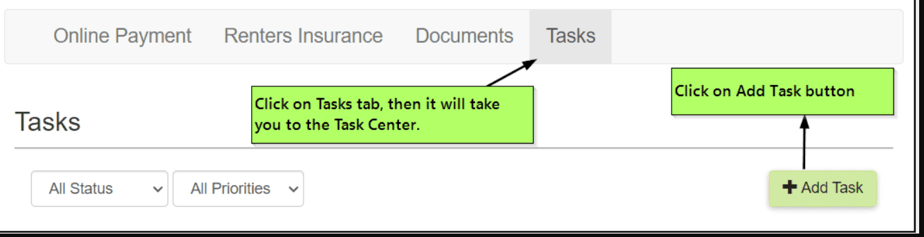 3. In the Task Center, click on Add Task to start a new maintenance request.